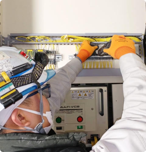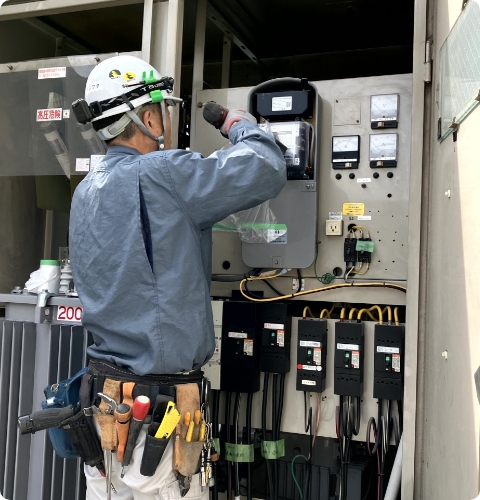 屋内電気設備工事施設建設電気工事が多く、受変電設備、動力設備、照明設備、コンセント設備などを、病院・ショッピングモール・物流倉庫・ごみ処理場など幅広く施工を行っています。